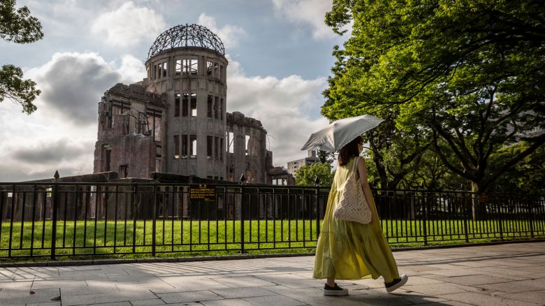 ▲ 일본 히로시마에서 한 여성이 원폭 돔 앞을 지나가고 있다.