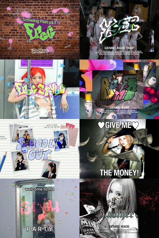 공개된 영상에는 'Growing Pain pt.1 : FREE'의 콘셉트 포토 촬영 현장이 가감 없이 담긴 가운데, 타이틀곡 'FREESTYLE'을 포함해 'YSSR', 'ADHD', 'School's Out', 'MON3Y 8ANK', 'soju', 'Same Shit 中 Another One' 등 총 7곡의 하이라이트 음원 일부가 삽입돼 보고, 듣는 즐거움을 안겼다.