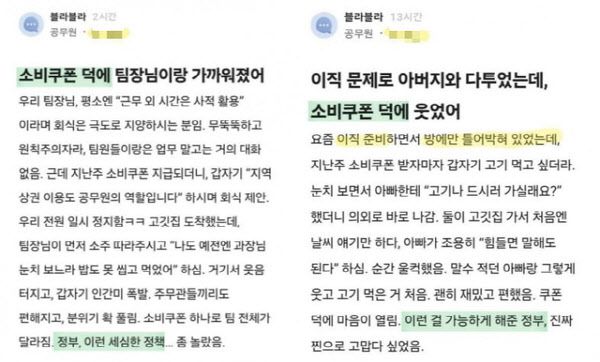 블라인드에 게재된 ‘소비쿠폰’ 후기