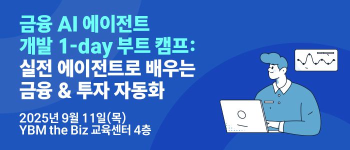 AI 기술이 금융업계의 패러다임을 바꾸고 있는 가운데, 실무자를 위한 특화 교육 프로그램이 주목받고 있다. 전자신문인터넷이 9월 11일(장소: 강남역 YBMtheBiz 교육연수센터) 개최하는 '금융 AI 에이전트 개발 1-Day 부트캠프: 실전 에이전트로 배우는 금융 & 투자 자동화'는 빠르게 발전하는 AI 에이전트 기술을 금융 업무에 직접 적용할 수 있도록 설계된 하루 과정의 집중 교육이다.