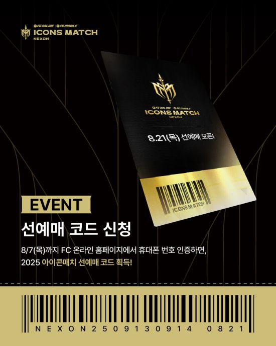 (엑스포츠뉴스 유희은 기자) 넥슨은 자사가 서비스하는 축구 게임 ‘FC 온라인’과 ‘FC 모바일’에서 오는 ‘2025 아이콘매치’의 선예매 코드를 신청할 수 있는 이벤트를 진행한다고 6일 밝혔다.