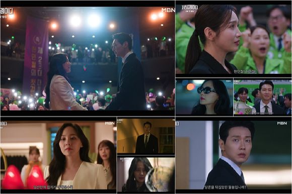 먼저 차수연(유진)이 화려한 의상이 겹겹이 걸려있는 드레스룸으로 향하는 사이 현민철(지현우)이 단호한 표정으로 "단 한 사람만이 저를 떠나지 않았습니다"라고 목소리를 높인다. 그리고 현민철을 향해 손을 내미는 차수연의 확신에 찬 모습 뒤로 "당신 덕분에 여기까지 올 수 있었습니다"라는 현민철의 소감과 함께 현민철의 대통령 당선 확정에 감격한 채 축하 꽃다발을 건네는 신해린(이민영)의 모습이 비춰진다.