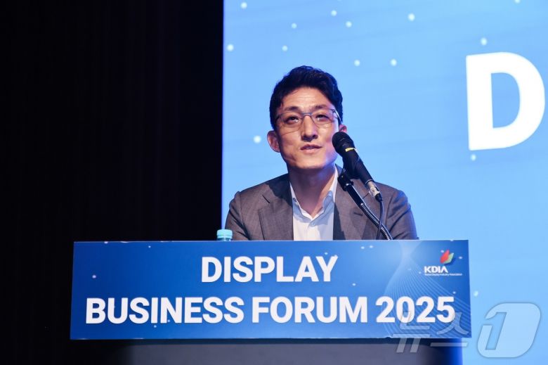 황상근 LG디스플레이 상무가 6일 서울 코엑스에서 열린 2025 디스플레이 비즈니스 포럼에서 기조 연설을 하고 있다. (LG디스플레이 제공,재판매 및 DB 금지)2025.8.6/뉴스1 ⓒ News1 최동현 기자 |