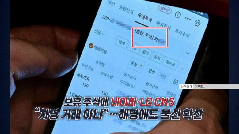 당일 오전 카메라에 포착된 휴대전화 앱의 보유 주식 목록에는 네이버와 LG CNS가 보입니다.