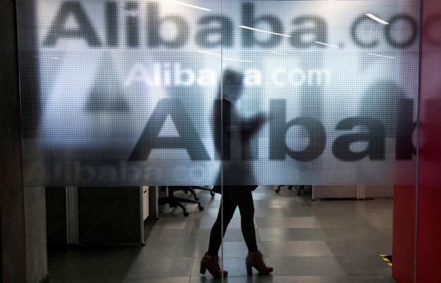중국 항저우 알리바바 그룹 본사 유리벽 너머로 직원이 지나가고 있다. [사진=로이터연합뉴스] |