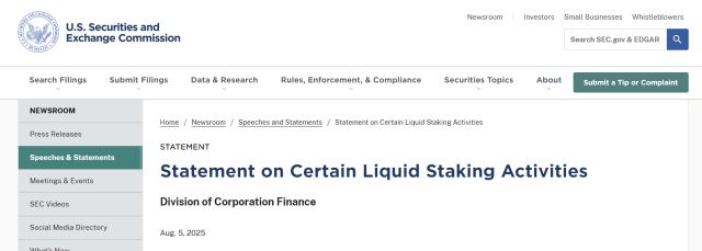 미국 증권거래위원회(SEC)가 일부 리퀴드 스테이킹 활동이 증권에 해당하지 않는다는 견해를 밝혔다. 가상자산 친화적 규제 기조를 강화하고 있는 SEC가 본격적인 입장 정리에 나섰다는 평가가 나온다.