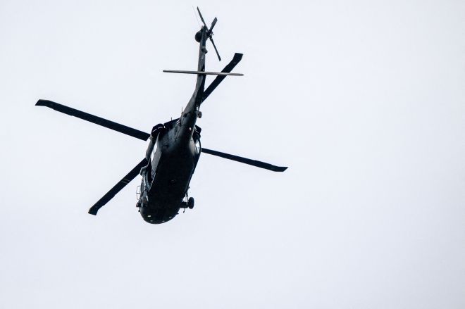 미국 텍사스 커빌 상공을 비행 중인 블랙호크 헬기. 2025년 7월 14일 폭우로 인한 구조 작전 중 촬영된 자료사진으로, 이번 이탈리아 돌로미티산맥 조난 사건과는 관련이 없다. AFP 연합뉴스 |