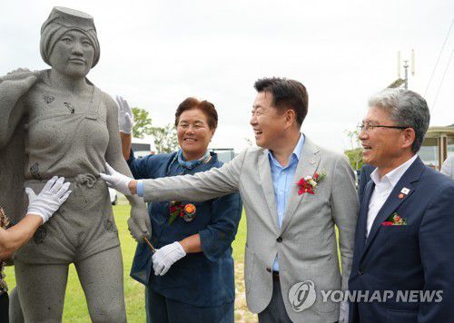 (제주=연합뉴스) 고성식 기자 = 제주해녀상이 포항시 구룡포에 제막됐다.