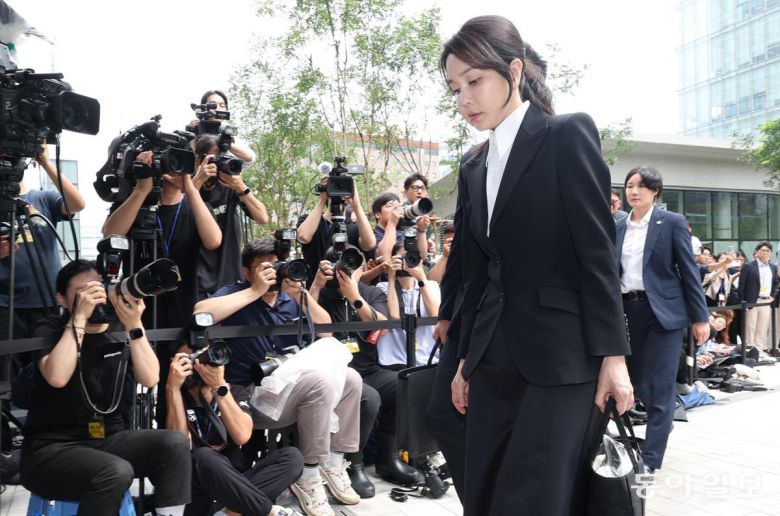 도이치모터스 주가조작 연루 의혹 등을 받는 김건희 여사가 6일 서울 종로구 김건희 특검팀(특별검사 민중기) 사무실에 피의자 신분으로 조사를 받기 위해 들어서고 있다. 변영욱 기자 cut@donga.com |