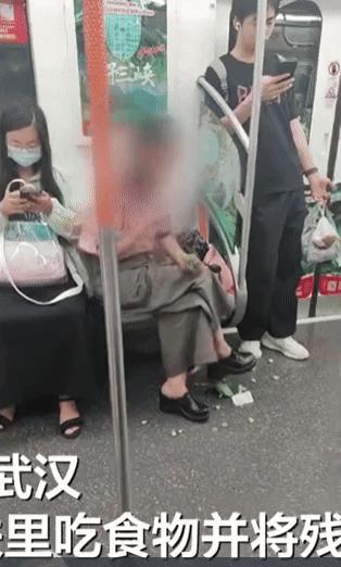 5일 중국 베이징뉴스에 따르면 최근 중국 후베이성 우한 지하철에서 한 여성이 열차 안에서 음식을 먹으며 남은 찌꺼기를 바닥에 버리는 장면이 포착됐다.