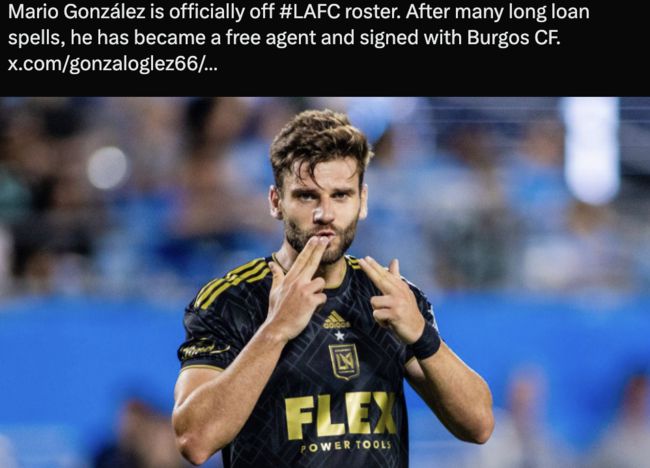 LAFC는 6일부로 장기 임대를 보냈던 공격수 마리오 곤살레스와 계약을 정리했다고 전했다. 자유계약 신분을 얻은 곤살레스는 스페인 2부리그 부르고스로 이적했다.