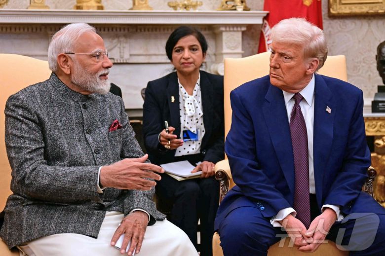 지난 2월 13일(현지시간) 도널드 트럼프 미국 대통령(사진 오른쪽)과 나렌드라 모디 인도 총리가 미국 워싱턴DC 백악관에서 회담하고 있다. 2025.02.14 ⓒ AFP=뉴스1 ⓒ News1 우동명 기자 |