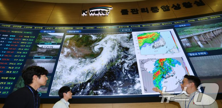 7일 대전·충남엔 새벽부터 일부 지역을 중심으로 비가 내릴 것으로 예보됐다. 대전 대덕구 한국수자원공사 물관리종합상황실에서 직원들이 호우대비 모니터링을 하고 있다. /뉴스1 ⓒ News1 김기태 기자 |