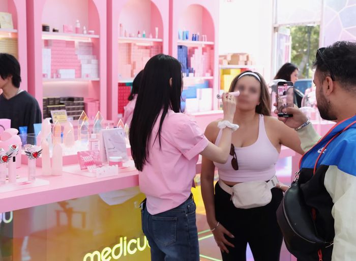 에이피알이 지난 3월 미국 LA(로스앤젤레스) 멜로즈 거리에서 진행한 메디큐브 팝업 스토어에서 외국인이 뷰티 디바이스를 체험하고 있다. [사진제공=에이피알]