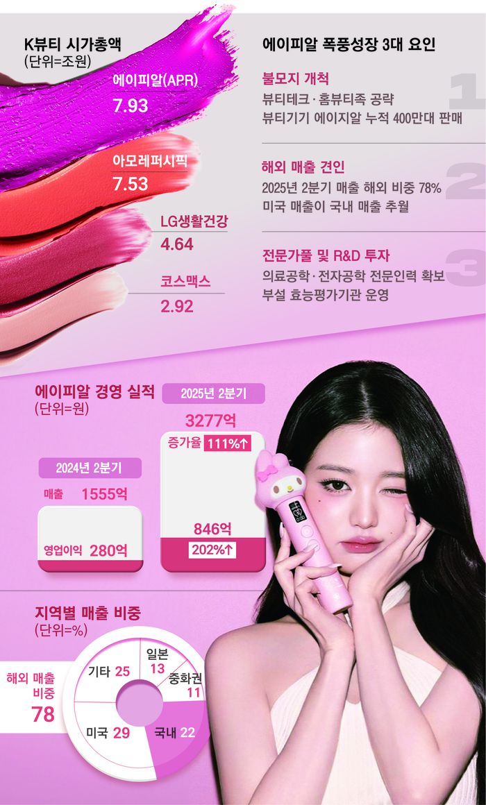 6일 업계 전문가들에 따르면 에이피알의 폭발적 성장 비결은 불모지 개척·해외 진출 성공·강력한 연구개발(R&D) 경쟁력 등 세 가지로 요약된다.