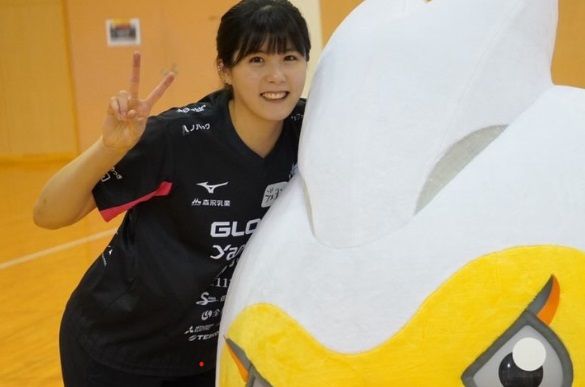 일본 빅토리나 히메지 구단은 지난 주말 구단 팬미팅 행사 사진을 공식 SNS에 업데이트했다. 사진 중에는 팀 마스크트와 함께 활짝 웃고 있는 이재영이 눈에 들어온다.