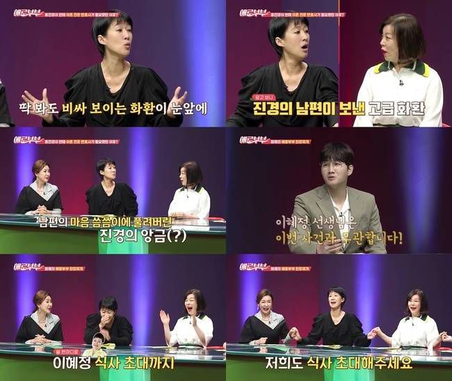 물론 불화만 털어놨던 것은 아니다. 홍진경은 "저는 '애로부부' MC를 하면서 오히려 순기능이 있더라. 워낙 센 사연들을 보다 보니까 우리 남편이 너무 순둥이 같고 예뻐 보인다. 자는 모습도 사랑스럽고 사이가 좋아졌다"며 부부 사이가 돈독해졌다고 긍정적인 변화를 언급하기도 했다.