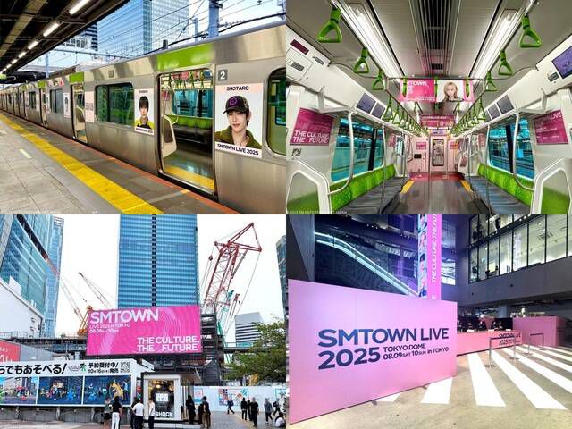 먼저 지난 1일부터 15일까지 도쿄 도심을 순환하는 JR 야마노테선에는 SM 소속 아티스트들의 비주얼로 랩핑된 열차가 시내를 누빈다. 시부야역 일대에도 'SMTOWN LIVE 2025' 도쿄돔 콘서트를 예고하는 대형 옥외 광고가 설치돼 시선을 사로잡는다.
