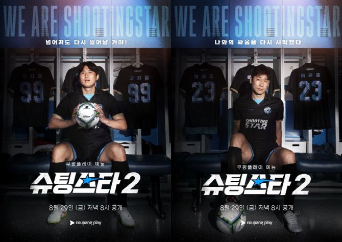 오는 29일 첫 공개되는 쿠팡플레이 예능 ‘슈팅스타’ 시즌2(슈팅스타2)는 7일 새롭게 합류한 구자철, 이근호 두 선수의 출사표 포스터를 공개했다.