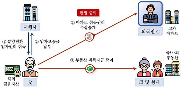 소득원 없는 외국인이 아버리로부터 아파트 취득권리를 무상으로  승계한 후 분양전환해 고가 아파트를 취득한 사례[자료=국세청]