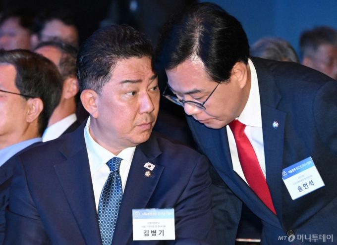 (서울=뉴스1) 국회사진기자단 = 김병기 더불어민주당 대표 직무대행 겸 원내대표와 송언석 국민의힘 비상대책위원장 겸 원내대표가 31일 서울 중구 신라호텔에서 열린 서울경제 창간 65주년 기념식 '다시, 미러클 코리아'에 참석하고 있다. 2025.7.31/뉴스1 Copyright (C) 뉴스1. All rights reserved. 무단 전재 및 재배포, AI학습 이용 금지. /사진=(서울=뉴스1) 국회사진기자단 |
