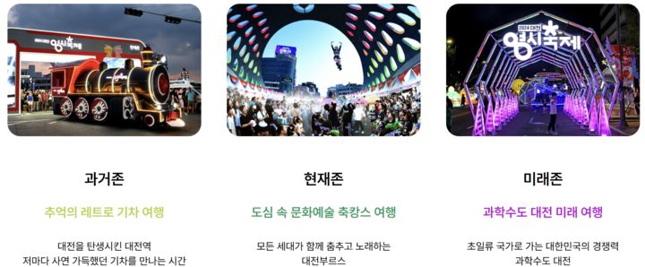 세계인이 함께 즐기는 글로벌 축제로 도약하고자 기획된 이번 행사는 '시간여행'을 테마로 대전의 과거, 현재, 미래를 아우르는 프로그램으로 구성됐다.