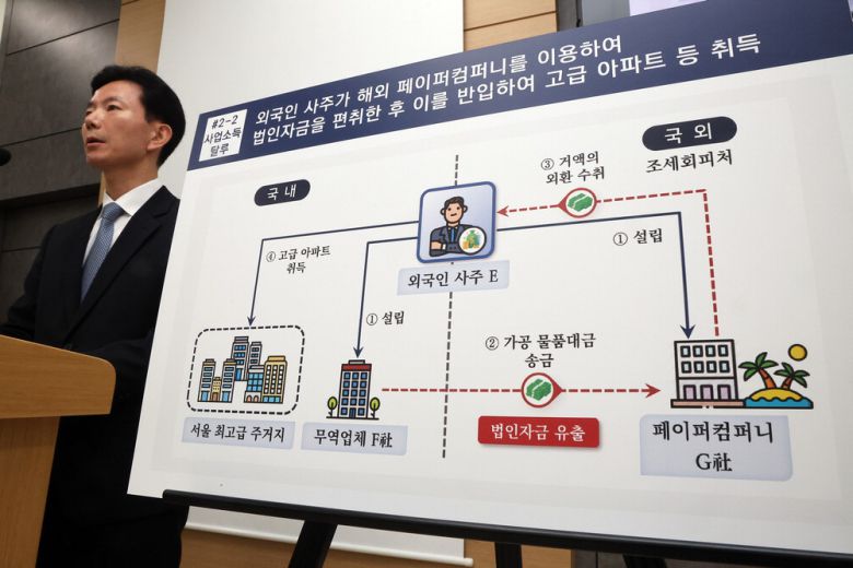 조사 대상자 중 외국인 B씨는 전자부품 무역업체를 국내에 설립하고, 조세회피처 유령회사를 통해 허위 물품 대금을 지급하는 방식으로 법인 자금을 빼돌렸다. B씨는 이 자금을 다시 국내로 반입해 단기간에 서울 용산구 소재 초고가 아파트와 토지를 매입했다. 이 아파트는 현재 시세로 100억원이 넘는다.