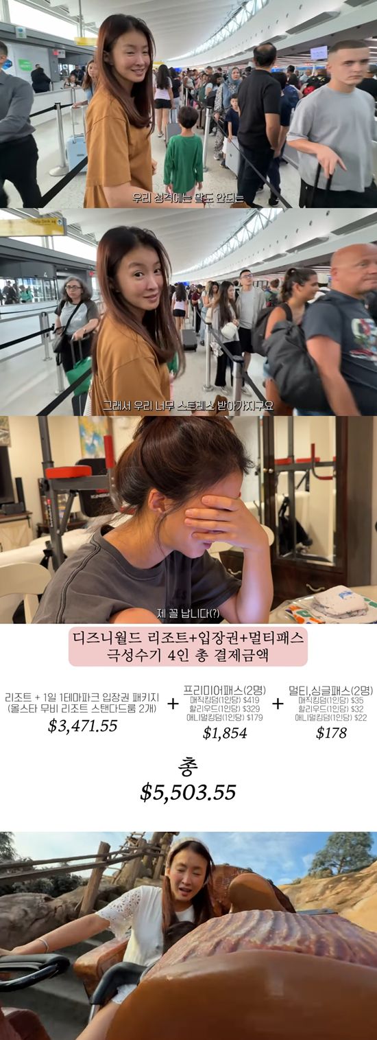 이시영 일행 총 4명이 결제한 디즈니 월드 리조트와 입장권, 멀티패스 가격은 5,503.55달러로 한화 약 760만 원이었다. 이 외에도 우버, 식사, 기념품 등의 경비를 합하면 썸네일로 알린 바와 같이 약 1,000만 원의 비용이 지출된 것으로 보인다.
