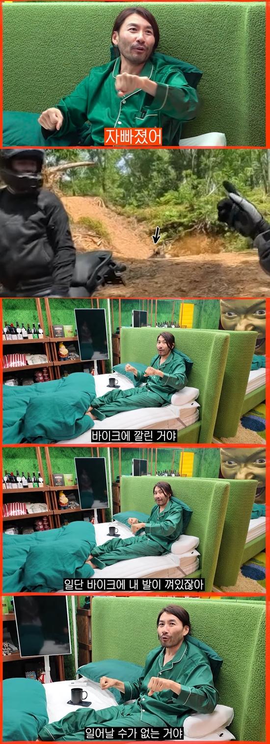 또 "그걸 타고 출발했는데, 두 번째 바퀴를 돌 때 (관계자가) '너 너무 잘 타니까 원래 갔던 길로 안 가고 이 길로 가볼래?'라고 묻더라. 추천한 길은 경사가 있고 바이크로 넘어가면 아래에 물이 있었다. (원래 길로 가면) 루저가 될 것 같았다"라며 당시를 회상했다.