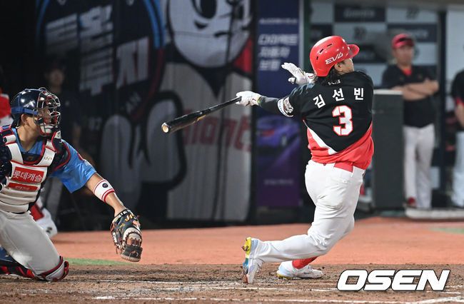 [OSEN=부산, 이석우 기자] 7일 부산 사직야구장에서 2025 신한 SOL 뱅크 KBO 리그 롯데 자이언츠와 KIA 타이거즈의 경기가 열렸다. 홈팀 롯데는 이민석이, 방문팀 KIA는 양현종이 선발 출전했다. KIA 타이거즈 김선빈이 5회초 무사 1루 좌월 2점 홈런을 치고 있다. 2025.08.07 / foto0307@osen.co.kr 이 기사의 카테고리는 언론사의 분류를 따릅니다.0공유하기