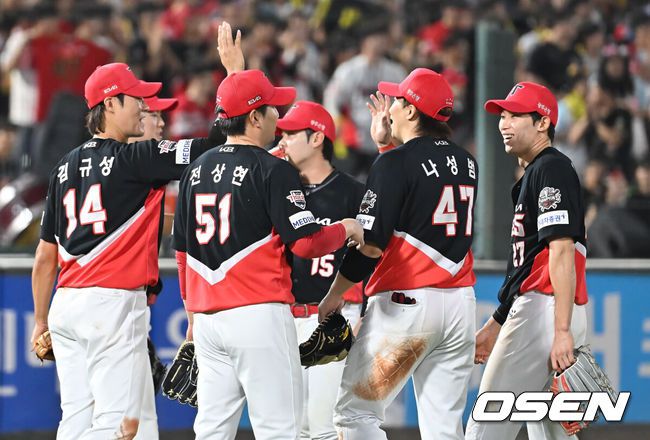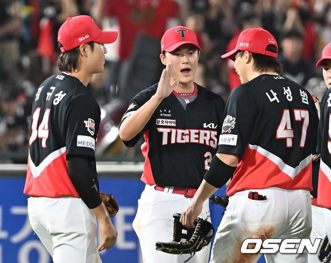 KIA는 7일 부산 사직구장에서 열린 ‘2025 신한 SOL뱅크 KBO리그’ 정규시즌 롯데 자이언츠와의 경기에서 6-5로 신승을 거뒀다. 이로써 KIA는 위닝시리즈를 달성하고 50승 48패 4무를 마크했다. 다시 4위로 올라섰다. 롯데는 5연속 위닝시리즈에 도전했지만 실패했다. 58승 46패 3무.