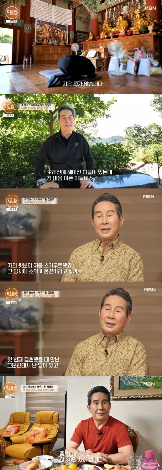 드라마 '야인시대'에 출연했던 정일모는 이날 공개된 영상에서 "지은 죄가 많다"며 속죄를 담아 절을 해 궁금증을 유발했다. 무려 6년째 108배를 올리고 있다고.