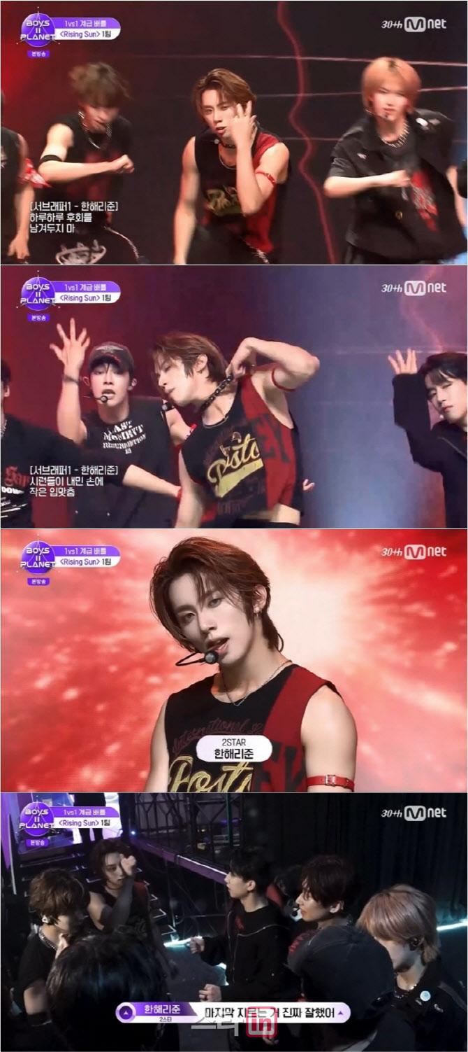 이날 방송에서 한해리준은 ‘라이징 선’(Rising Sun) 1팀 메인 댄서이자 서브 래퍼로 무대에 올라 다크비 활동을 통해 쌓아온 파워풀하고 절도 있는 춤 실력을 뽐내며 퍼포먼스의 중심축 역할을 했다.