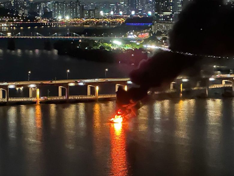 이날 오후 8시 45분쯤 “한강에 떠 있는 요트에 불이 났다”는 신고를 받은 소방은 차량 19대, 인원 61명을 동원해 화재 발생 약 30분 만인 오후 9시 16분쯤 불을 완전히 껐다. 화재로 인한 인명 피해는 없는 것으로 조사됐다. 요트에 타고 있던 시민 6명은 경상을 입고 병원으로 이송됐다.