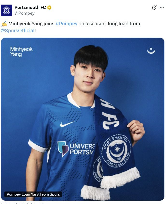 포츠머스 구단도 "양민혁을 한 시즌 동안 임대 영입했다고" 전했다.