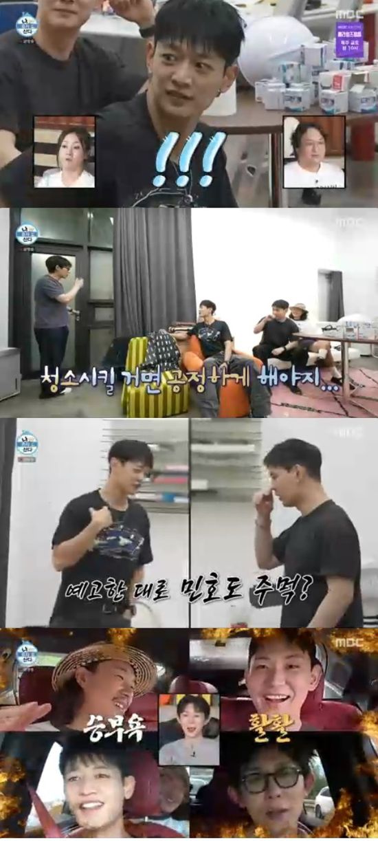 민호는 창고를 자신이 청소하게 될까봐 발끈하고 나서며 가위바위보로 결정하자고 제안했다.