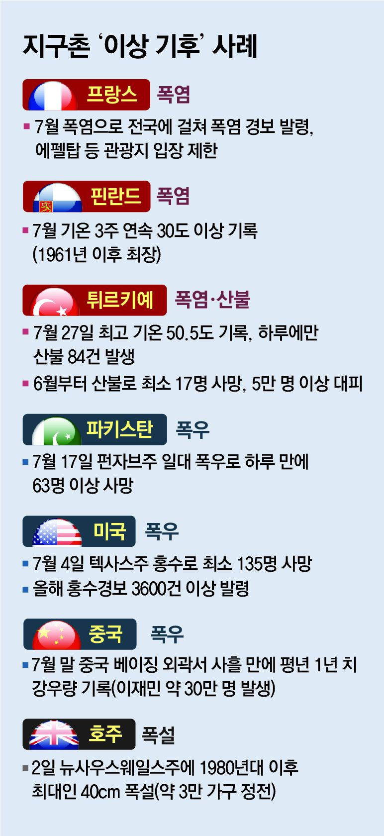 지난달 폭우, 홍수, 폭염 등 극한 ‘이상 기후’가 지구촌을 덮었다.
