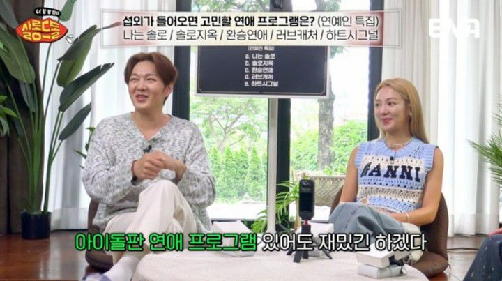 지난 8일 방송된 ENA 예능 '살롱드돌: 너 참 말 많다' 3회에서는 '썸'과 '플러팅'의 경계, '잠수 이별' 등 연애 주제를 두고 효연, 키, 이창섭의 솔직한 토크가 이어졌다.