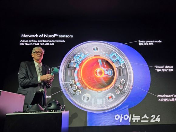 지난해 제임스 다이슨 다이슨 창립자 겸 창업자이자 수석 엔지니어가 서울 성동구에서 열린 신제품 발표회에서 신제품을 설명하고 있다. [사진=권용삼 기자]