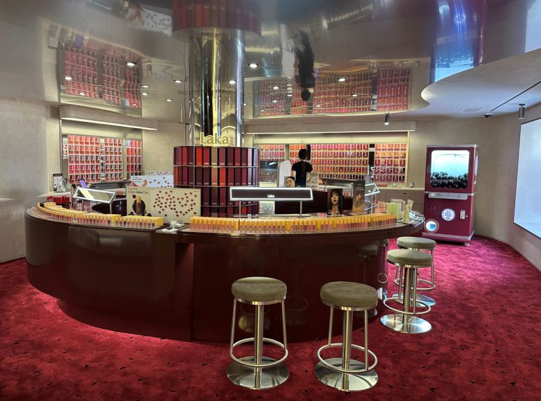 라카가 플래그십 스토어를 열기까지는 9개월이 소요됐는데, 이러한 노력의 결실은 매장 곳곳에서 확인할 수 있다. 인테리어는 레페리의 자회사 알렉스 디자인이 맡았다. 먼저, 버건디 색상의 통일된 컬러감과 실버 소재 포인트로 브랜드 정체성이 두드러졌다. 1층의 중앙 정원에서는 분수와 대형 라카 틴트 구조물을 배경으로 인증샷을 남기기도 좋다.