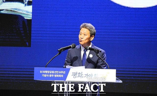 지난해 9⋅19평양공동선언 6주년 기념식에서 임종석 전 대통령비서실장이 "통일하지 말고 현실적 평화를 지향하는 실질적 방안을 마련하자"라고 말했다. /더팩트DB |
