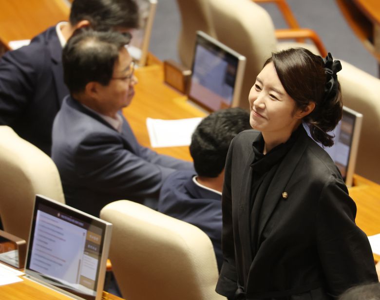 국민의힘은 9일 이재명 대통령 강성지지층인 ‘개딸’이 여성가족부 장관 후보자였던 강선우 더불어민주당 의원 ‘갑질’ 의혹을 폭로한 보좌진 색출에 나섰다며 2차 가해라고 비판했다. 강 의원이 5일 국회 본회의에서 투표한 뒤 이동하는 모습. [연합]