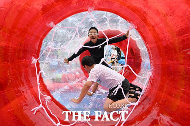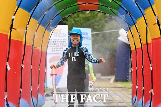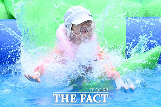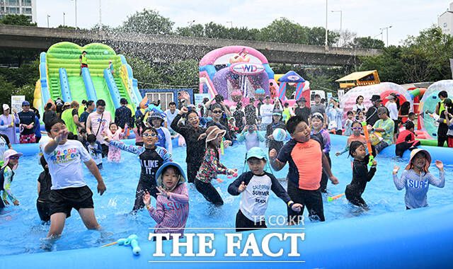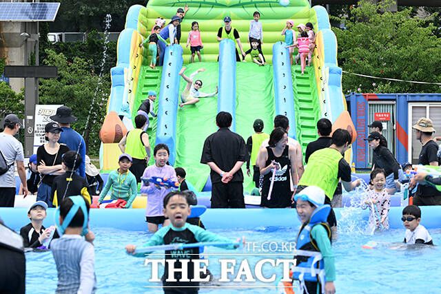 [더팩트ㅣ서예원 기자] 말복인 9일 오후 서울 마포구 망원한강공원 내 서울함공원에서 열린 여름 축제 '서울함 워터피크닉'을 찾은 어린이들이 물놀이를 즐기고 있다.