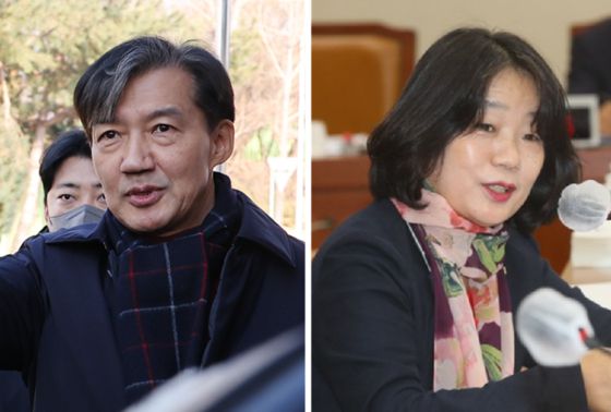 조국 전 조국혁신당 대표와 윤미향 전 더불어민주당 의원. 〈사진=연합뉴스〉 |
