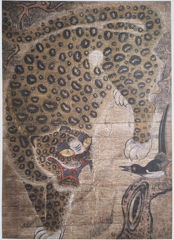 새는 이승과 저승을 연결하는 영매이자 조상신이기도 했다. 그 새가 원래 까마귀에서 작은 까마귀, 즉 까치로 변해왔다. 보통 까치는 소나무에 앉아있고 아래에 자리한 호랑이는 까치와 하늘을 올려다보거나 그림 바깥의 관자를 응시한다. 그 눈매가 보통 무서운 것이 아니다. 호랑이는 양(陽)의 동물이었다. 그러기에 음(陰)의 존재인 귀신과 도깨비를 능히 잡아 후려치고 부러뜨리며 깨물어 먹을 수 있다고 했다. 이를 벽사(辟邪)라 한다. 벽사란 삿된 것 혹은 나쁜 것을 피한다는 뜻이다. 옛날에는 병에 걸렸을 때 호랑이 고기를 먹으면 효력이 있다고 믿었다. 종기에는 범 그림을 그려 붙이면 낫고 독감에도 ‘범 왔다’를 세 번 외우면 효과가 있다고 생각했으며, 갑자기 악귀를 만났을 경우에는 호랑이 가죽을 태워 물에 타 마시면 능히 물리칠 수 있다고 여겼다 한다. 한마디로 호랑이는 만병통치였던 셈이다. 아마도 한국인에게 호랑이는 하나의 신앙이지 않았을까? 어쨌든 호랑이의 진면목은 귀신 퇴치에 있었음은 틀림없었다.
