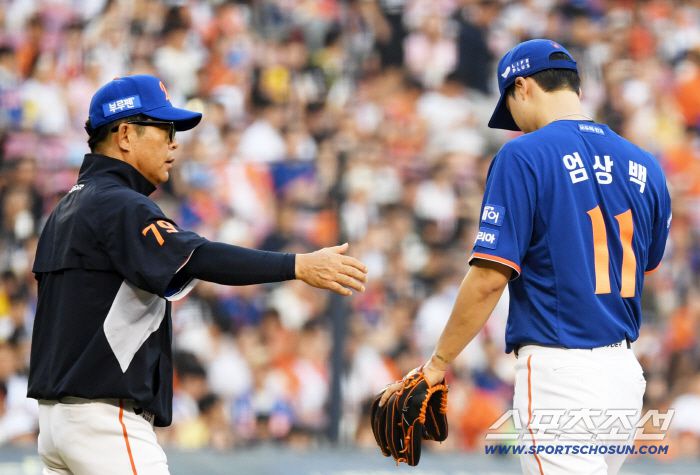 9일 잠실구장에서 열린 LG 트윈스와 한화 이글스의 경기. 2회초 한화 선발 엄상백이 아웃카운트를 1개도 잡지 못한 채 마운드에서 내려오고 있다. 잠실=박재만 기자 pjm@sportschosun.com/2025.08.09/