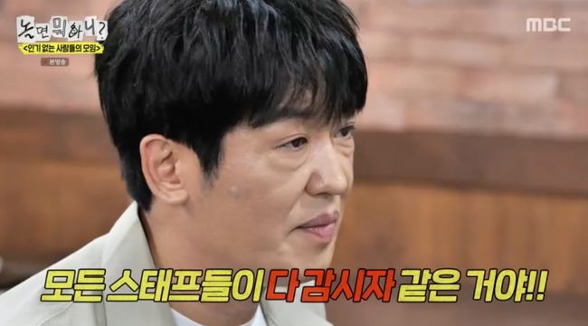 9일 오후 방송된 MBC 예능프로그램 ‘놀면 뭐하니?’에서는 유재석, 이이경이 허성태에게 ‘인사모(인기 없는 사람들의 모임)’ 초대장을 전달하는 모습이 그려졌다.