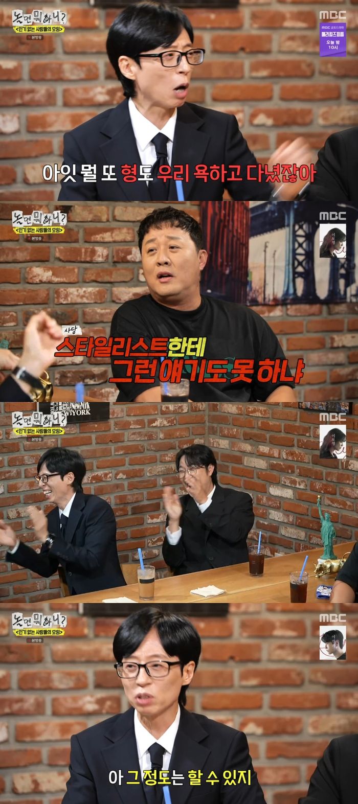 이를 듣던 유재석이 “아잇 형도 우리 욕하고 다녔잖아. 안 했어? 욕은 아니지만 조금 했어! 안 했어?”라고 추궁하자 정준하는 “안 했... 아니 내가 스타일리스트랑 그런 얘기도 못 하냐? 내가 어딜 가서 욕을 해”라고 인정해 좌중을 폭소케 했다.