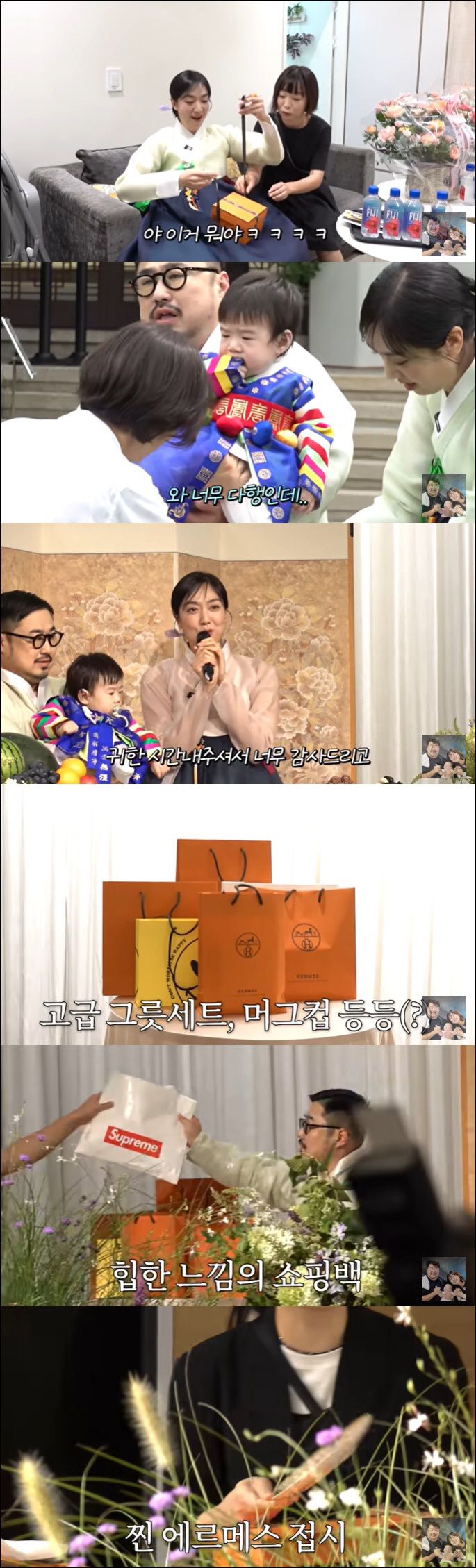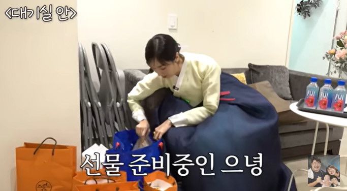 강재준이 낮잠을 푹 자고 온 현조를 데려올 동안 대기실에서 이은형은 손님들에게 줄 선물들을 준비했다. 이은형이 준비한 선물 쇼핑백은 무려 오렌지빛 에르메스였다.