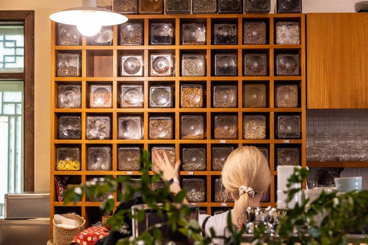 특유의 고즈넉함 속에서 당귀, 황기, 구기자 등 다양한 한약재를 블렌딩한 '한방차'를 허브 티처럼 뜨거운 물에서 3분가량 우려내 즐긴다.
